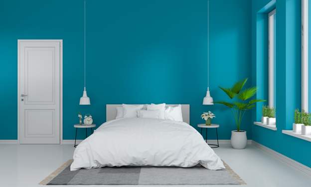 Colour schemes with blue bring restful qualities to a bedroom to help you sleep. It also makes your space feel a bit cooler, so blue is perfect if you live in hot weather.