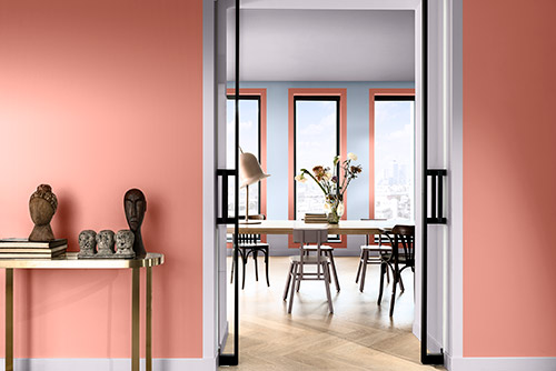 Your living room should be one of the most relaxing rooms in your home. So, when it comes to decorating this space, we suggest using pastel paint colours. Pale pinks and blues will make it easier for you to unwind and recharge. Pressed Petal is a grown-up pink that brings warmth and comfort to your walls. It looks beautiful paired with a calming Bright SkiesTM arch or uplifting Blood Orange shelving. Warm paint colours are flexible too, so they’ll work well with neutral or colourful furnishings.